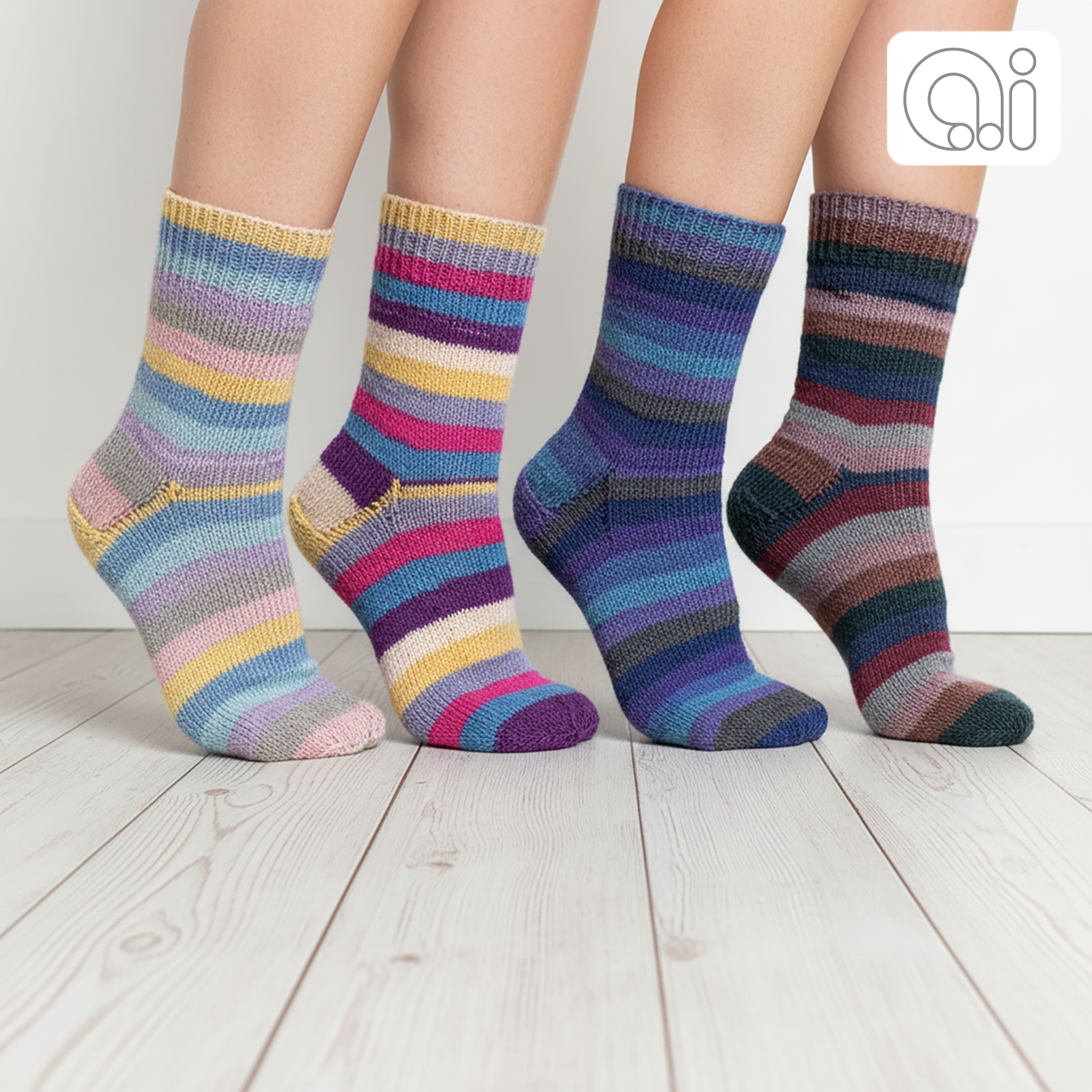 Smarte stribede strømper strikket af strømpegarn.